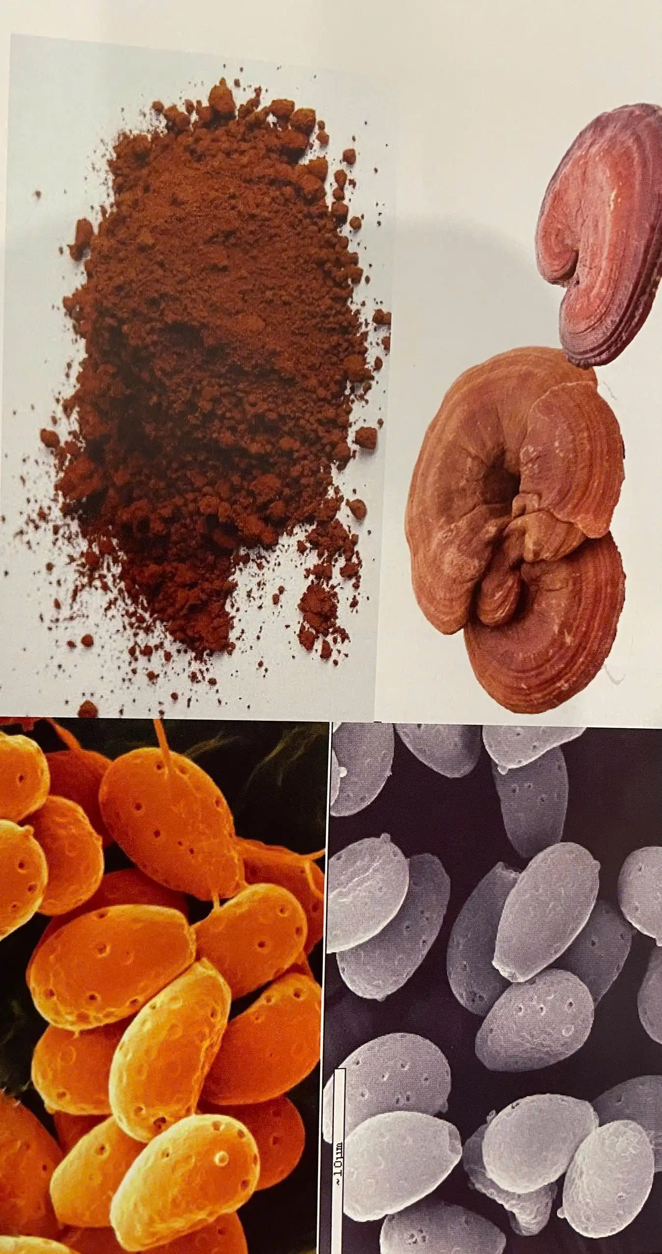 Bào tử nấm Linh Chi có thể được coi là một loại thực phẩm bảo vệ sức khỏe thành phần có trong các đảm bào tử Basidiospore. Khi trưởng thành từ các đảm bào tử giải phóng ra các bào tử. Bào tử có kích thước 5,2- 6,9 x 8,5 – 10um, bên trên có lỗ nảy mầm. Bào tử nấm Linh Chi có 2 lớp vỏ hình elip. Bào tử nấm linh chi tốt gấp 75 lần so với quả thể nấm.